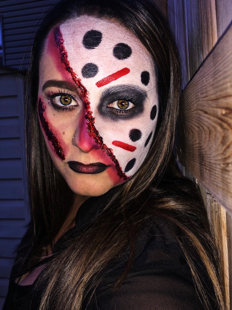 ONE OF MY FAVORITE DAYS! Happy Friday the 13th! Spooky time. Obviously I had to pay tribute to Jason Vorhees tonight. Nyx creme sfx makeup helped me out with this one.