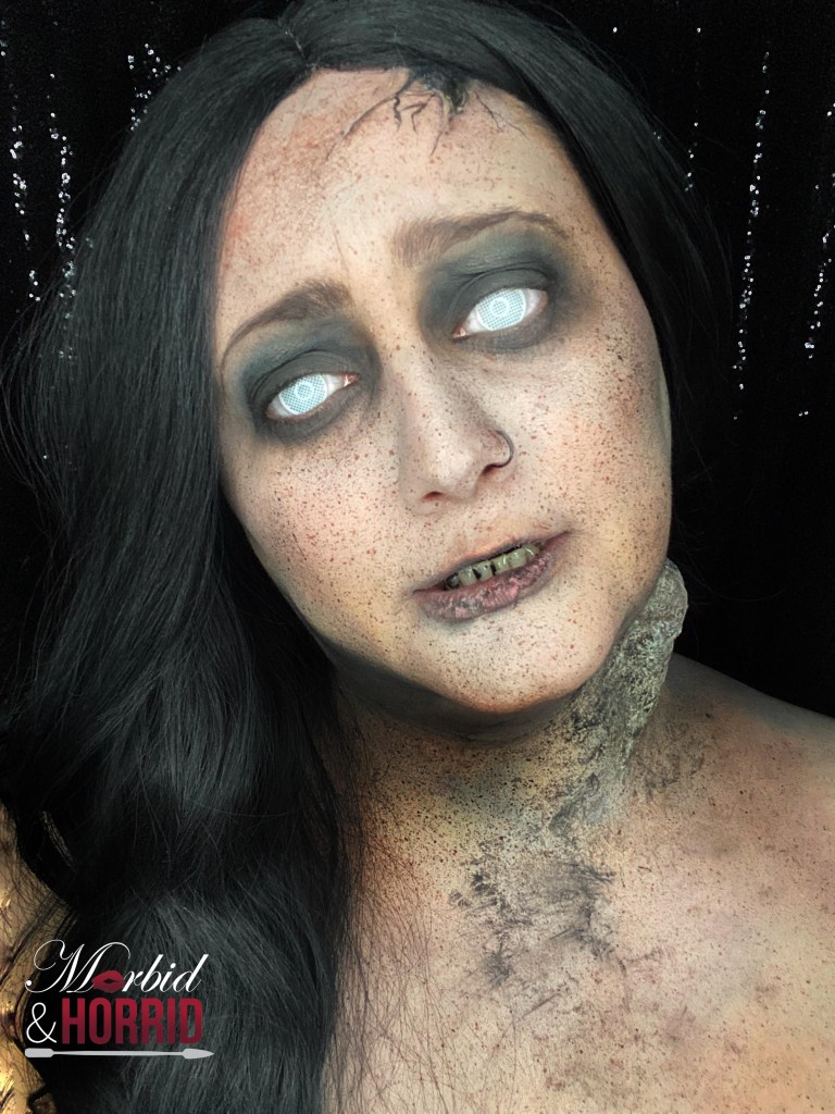 Finishing touches include – Latex on my lips and some black and gray eyeshadow, some black brow pomade in my teeth, and the contacts! What do you think of my work? Let me know!!