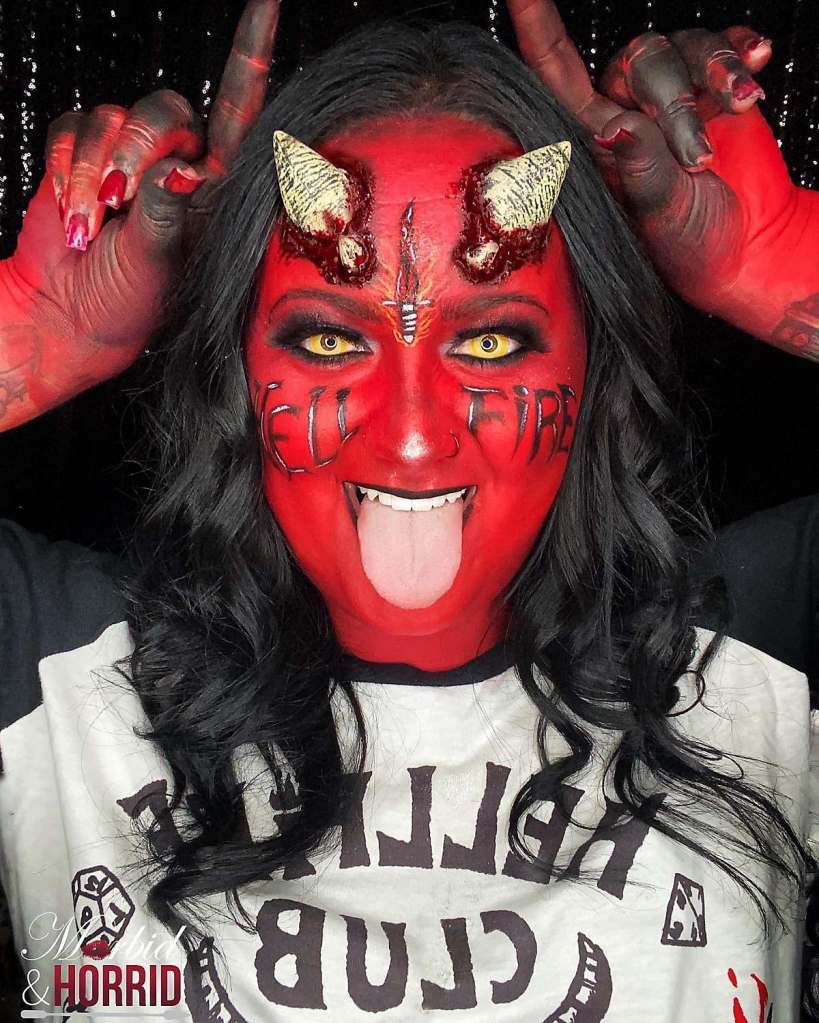 9 Incredible Halloween Makeup Ideas That Will Steal the Spotlight – For a downright spooky demon makeup that uses classic red paint, these two looks excel. SFX makeup artist @morbidandhorrid opted for horn prosthetics, red face paint, some additional makeup detailing, a bit of fake blood, and colored contact lenses. She’s also got a great TikTok that shows this application in quick stages.